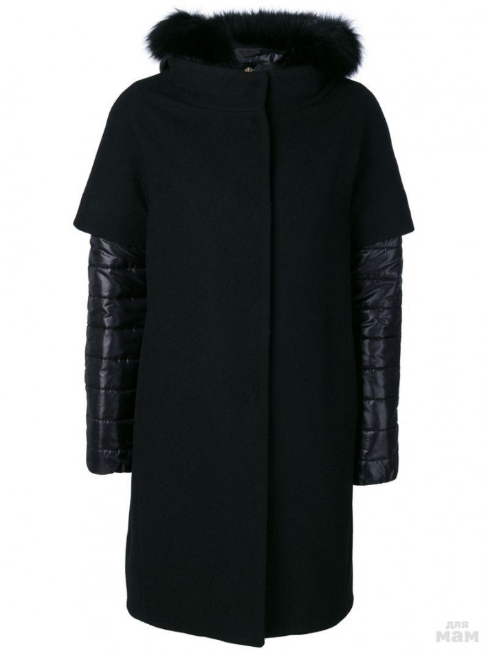 внутри не знаю что...но что-то теплое) та часть что простеганная (на первом фото хорошо видно)- впереди и капюшон и рукава- это все можно снять- оно на молниях пристегнуто к пальто. Само пальто теплое. Мы фотографировались при морозе -10 в течении часа- было норм. но конечно не для гуляний....