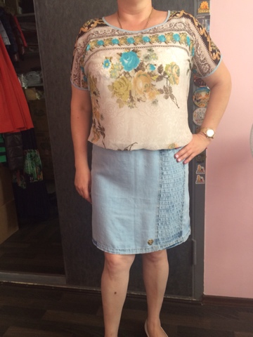 Наимягчайшая, тонкая ткань на жару. Подойдет на размер 50 рус. модели тесно в груди