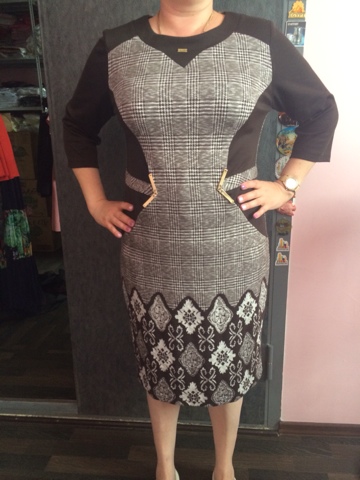Все фото сделаны на модели, у нее наш российский 52 размер. Ее замеры ОГ-111, ОТ-94, ОБ-110см.