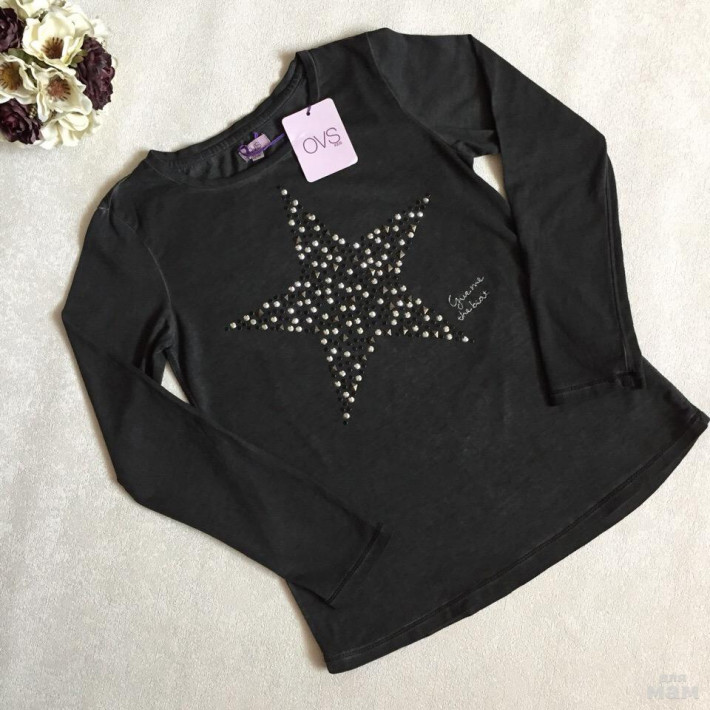 Лонгслив OVS, со звездой, 10-11 лет, рост 146 см. 360руб. Лонгслив OVS, пайетки,10-11лет. рост 146 см. 380руб. Тонкий джемпер OVS, 10-11лет, рост 146 см. 380руб.