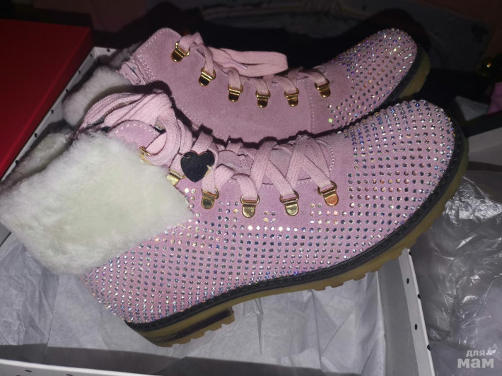 есть чирк с внутренний стороны правого ботиночка и выпало штук 5 страз....
