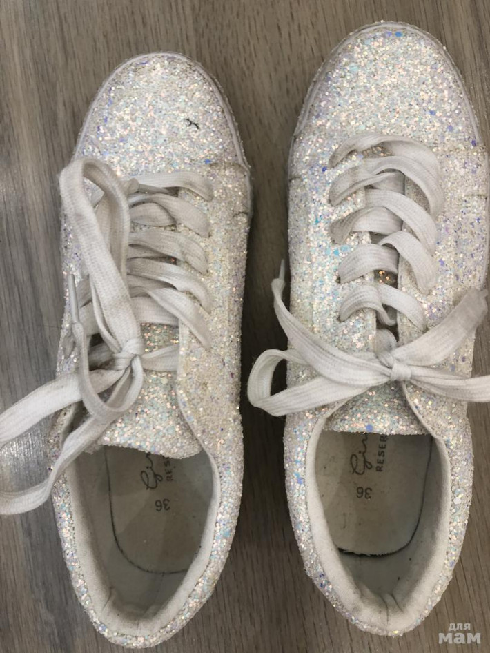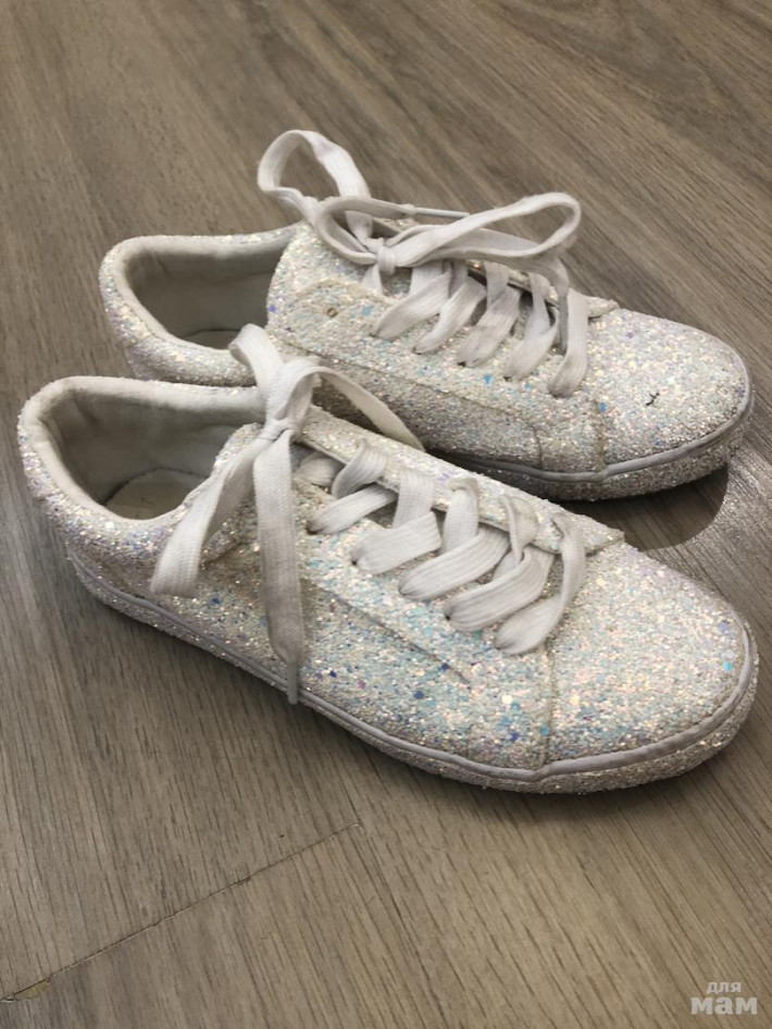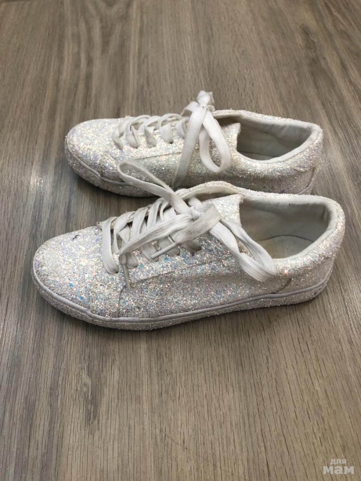 Серебряные кеды, очень нарядные, 36 р. (по стельке примерно 23 см), одевали один раз на выпускной 4 класса к платью, состояние новых, 1000 руб.