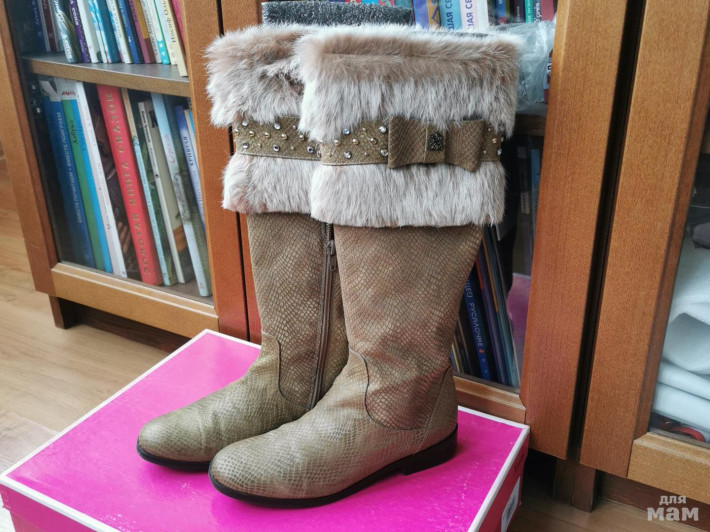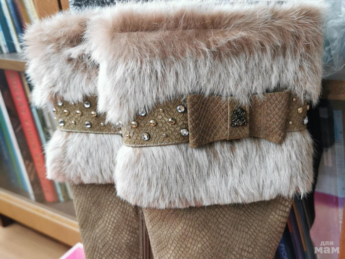 Шикарные сапоги для девочки, высокие, как у мамы. Производство Испания. Смотрятся на ножке обалденно. Маркировка 35, стелька 23 см. Натуральная кожа на флисе, отделка натуральный мех, стразы и клепки. Состояние идеальное, нюансов нет.отправляю почтой, Боксберри, Сдеком.