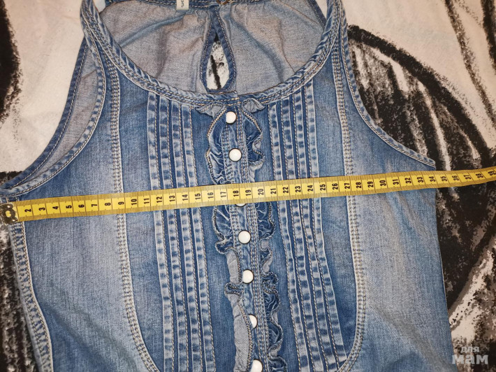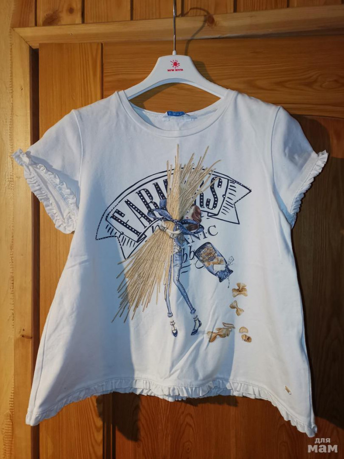 Моннализа футболка-туничка, р. 10 но на мой взгляд большимерит... Длина по спинке 60см, спереди чуть короче, ширина 41см.. Одевали и на 140см и до 160см...