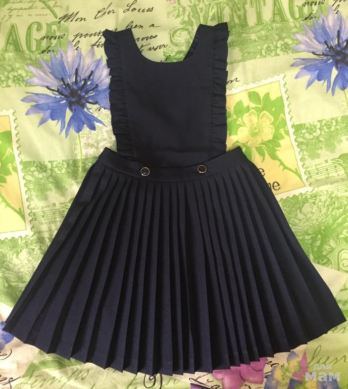 Новый сарафанчик р 140 ( синий) , лямки отстегиваются и получается юбочка, классный, не мнётся , нам к сожалению впритык(
