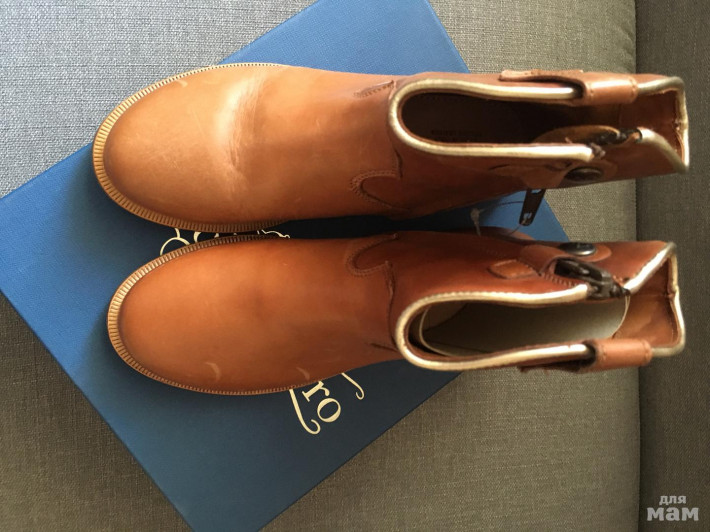 витринная пара, есть незначительные дефекты (чирки на коже и правый ботинок чуть замят от примерки - все на фото), после первой же носки, полагаю, все нивелируется)