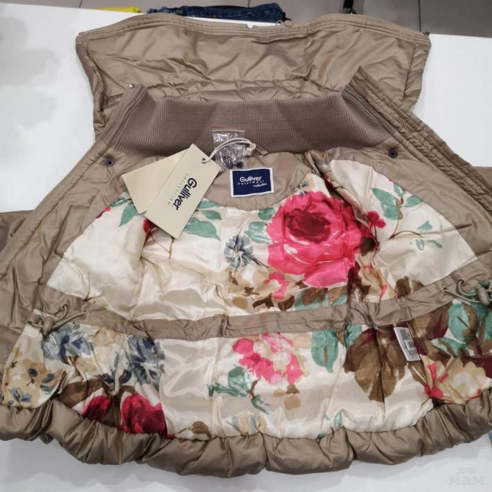 Эксклюзивный раритет от ГУЛЛИВЕРа!!! Всеми любмые садовые розы, куртка шикарная, капюшон превращается в воротник. Эко пух наполнитель. Демисезонная. Размер 92, цена 1750 рублей.