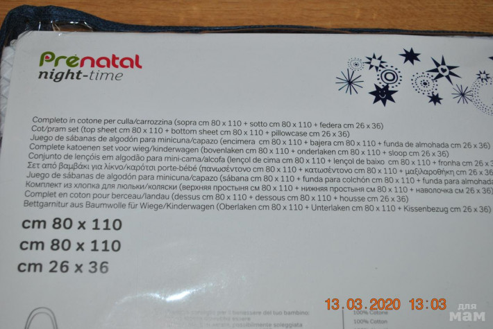 Новый комплект постельного белья для люльки или коляски Prenatal ( Италия)