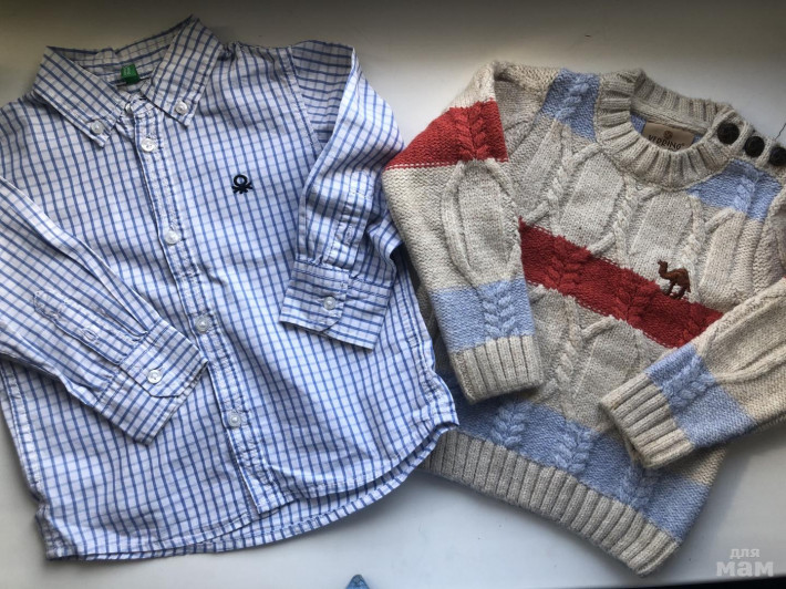 рубашка Benetton 2г, - 150руб, джемпер тёплый 2 года- 200руб