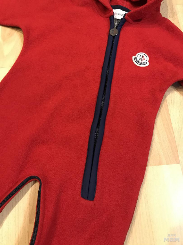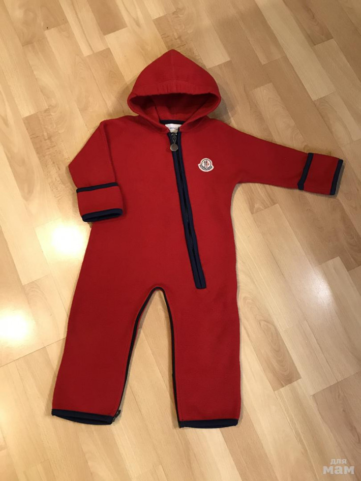 Флисовый комбинезон Moncler, цвет насыщенный красный, ярче, чем на фото. Маркировка 12-18 мес, но подойдёт на больший возраст. Состояние отличное. Мягкий, тёплый и очень удобный. Подойдёт мальчику и девочке. Длина от капюшона до низа 67 см, рукав от капюшона 34,5 см.