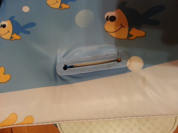 Стульчик в хорошем состоянии. Из дефектов - на сгибах местами треснула обивка сидения. На ремешках видны следы использования. Остальное все в полном порядке. Столик тоже есть.