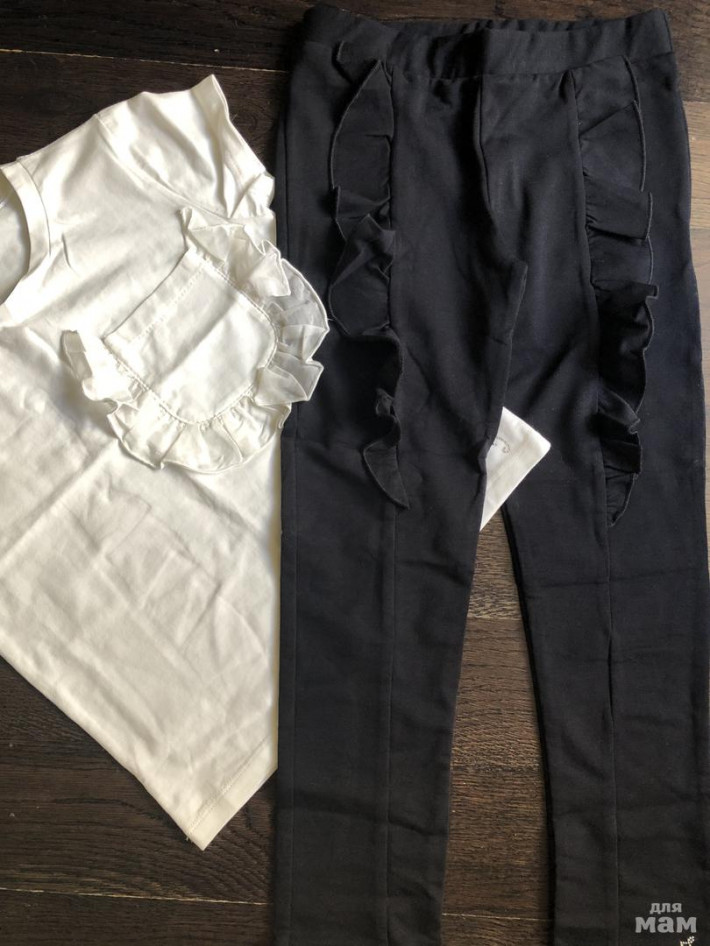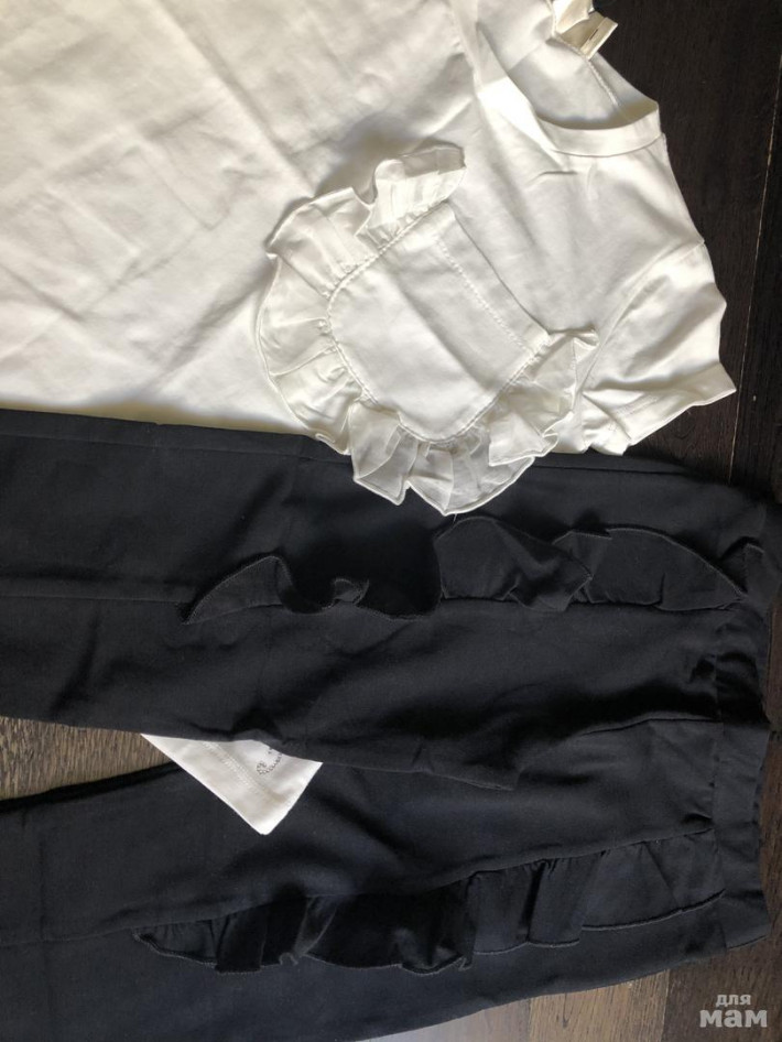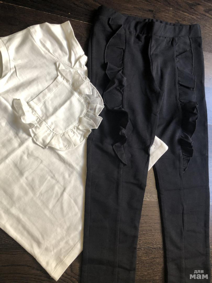Очень красивые и нежные топ и брючки!!! Топ можно в школу под сарафаны очень классно! Брючки мягкие, тоже с рюшами, брала комплектом, идеально вместе смотрятся! Как по мне маломерит, на 7 сядет идеально, но все дети разные. Топ 1700, брючки 1500.