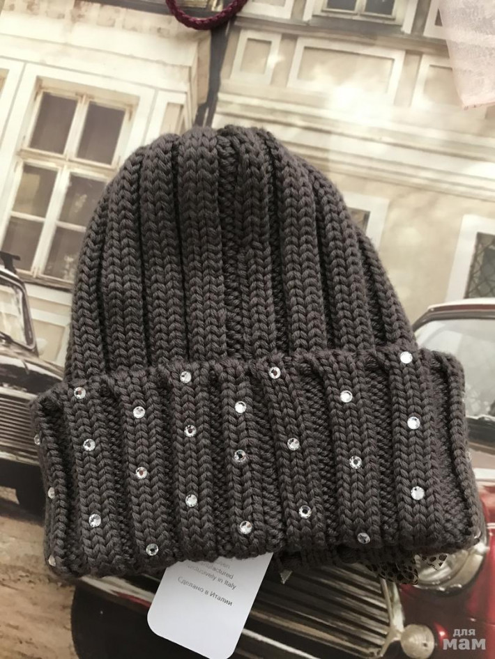 Шапка Catya, размер IV (примерно 48-52), шерсть 100 %, толстая вязка резинкой, хорошо тянется, декорирована стразами и бантами из бархата и ткани, сложный цвет ближе к коричневому, этикетку сняла, не носили, состояние идеальное