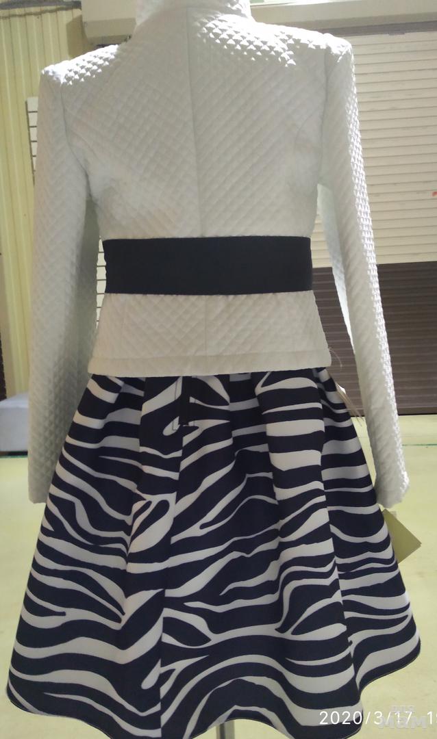 Новая стёганая куртка. Яркий контраст белого с чёрным. Куртка очень лёгкая. Смотрится нарядно. Хорошо как с юбкой,так и с брюками. Размер 140. Россия. Desty. В подарок новая шапка этой же фирмы. Если надо юбку как на фото,то тоже есть в наличии. Модный принт зебра. Фирма Desty. Модель 2020 года.
