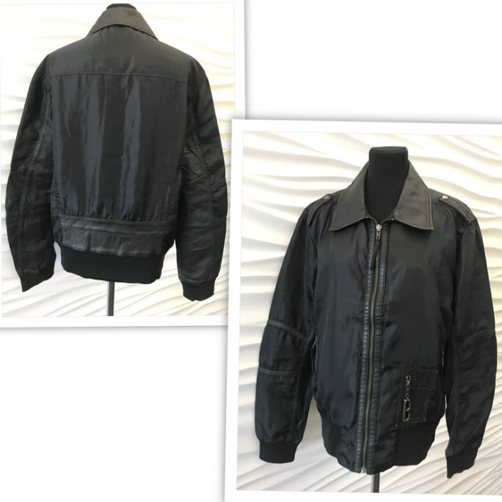 ✅Ветровка черная BIKKEMBERGS. Размер 54, комбинированная с натуральной кожей. Цена 9 тыс