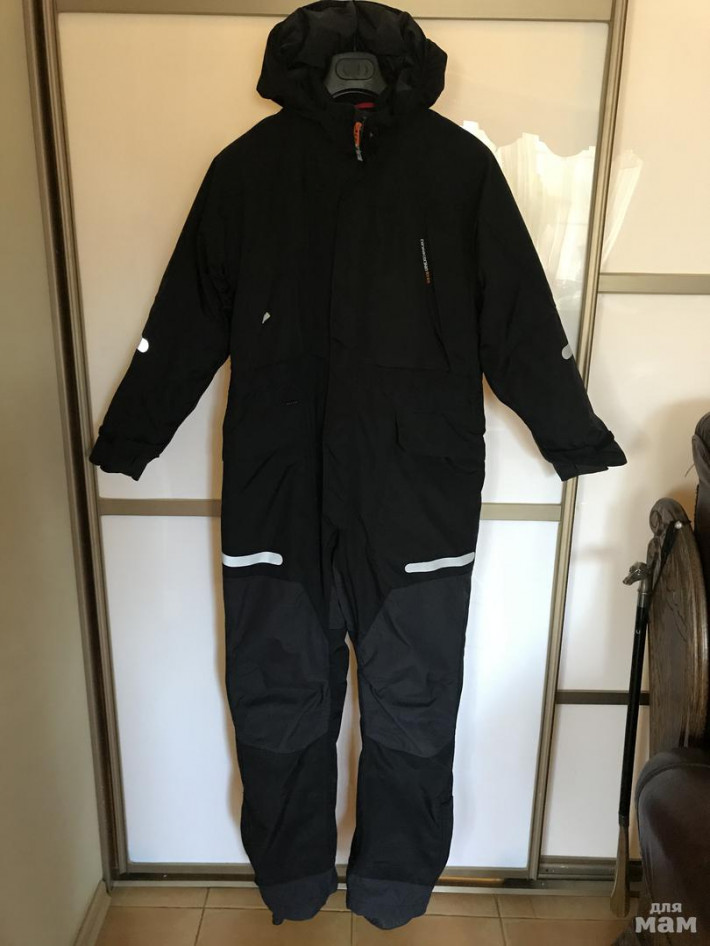 Комбинезон Didriksons, цвет чёрный, состояние отличное, надет несколько раз всего, никаких потертостей нет, но вытянулись резинки на защите от снега внутри штанин, которые натягиваются на ботинки. Широкий, удобный, не сковывает движения, в поясе утяжка, можно отрегулировать по фигуре.