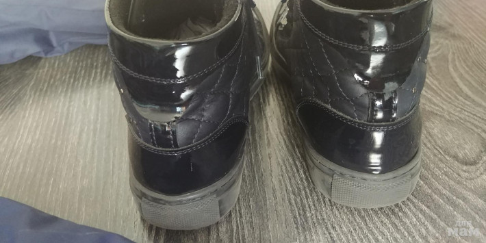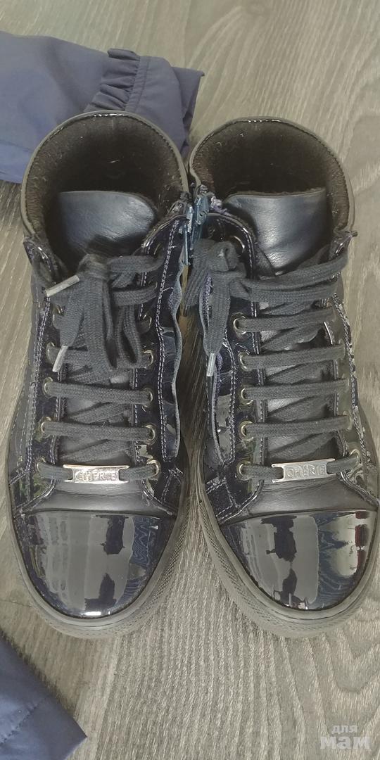 Ботинки Cherie, р.35 стелька 22,5 см, утепленные, темно-синие, на одном ботинке чуть лак треснул, на фото видно, в остальном без нюансов 1300р