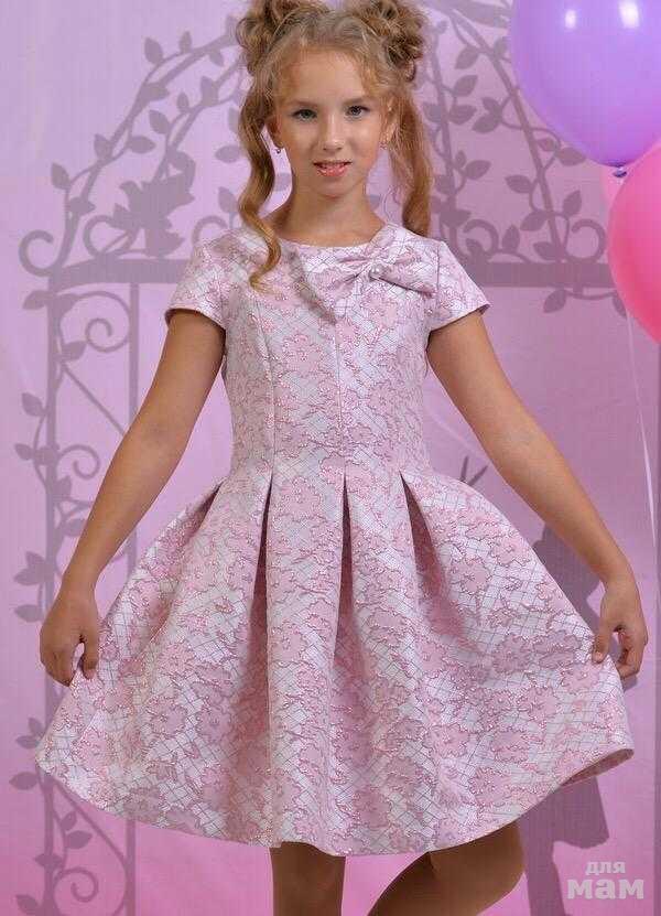 Элегантное платье для девочки приталенного силуэта, модель выполнена из плательной ткани "фукро" . Короткий рукав, на полочке украшение. На спинке застежка-молния.