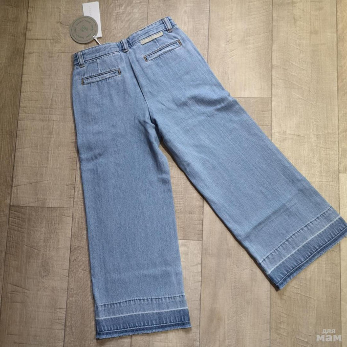Нежный наряд в светлых тонах. Свитшот SONIA RYKIEL, модель свободная, рукав модным фонариком, размер 8 лет, цена 6150 рублей. Не менее актуальная модель джинс из коллекции лето 20 STELLA MACCARTNEY. Мягкая джинса, трендовый крой. Посадка свободная, красивая. Размер 8 лет, цена 3900 рублей.