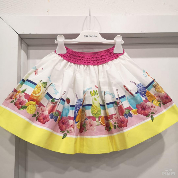 Юбочка MONNALISA, новая коллекция. Многослойная. Верхняя ткань и подклад хлопок. Подъюбник из двухслойного фатина Принт освежающий 🍹. Размер 6 лет, цена 7350.