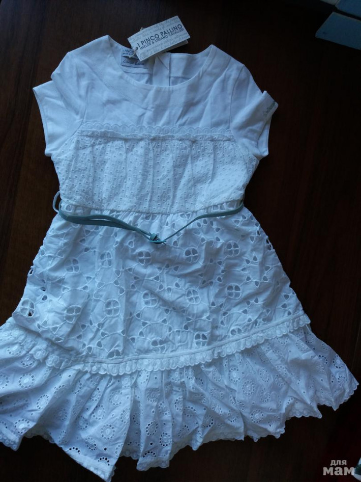 Кружевное I pinko pallino новое платье маркировка 8 лет, хлопок, цвет чисто белый. Мы про него забыли. Может маломерит, подойдет с 6 лет. Смотрите по замерам.