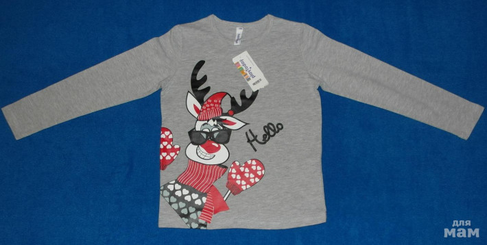 Футболка с оригинальным принтом в виде новогоднего оленя Санты смотрится очень позитивно и нарядно.