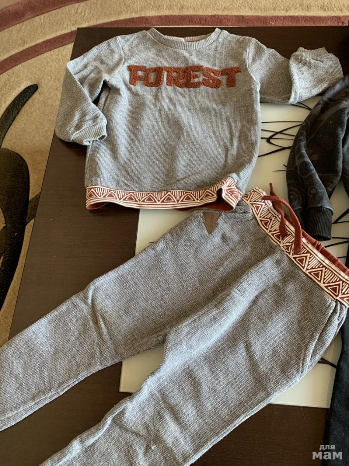 У серых штанов нюансы на коленях и на одном колене поехали петли в 1 см( можно зашить). Цена за / костюма.