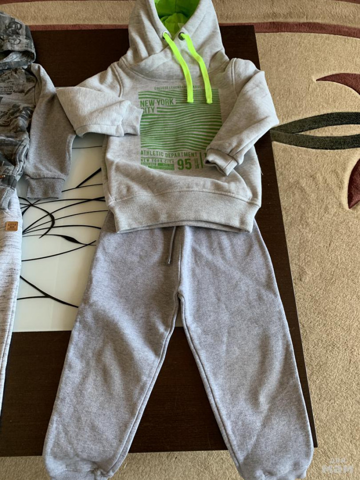 Цена за 2 костюма. Стильняшка кофта Новая. Майорал б/у но в хорошем состоянии. На обоих штанах нюанс на коленках ( испачканы).