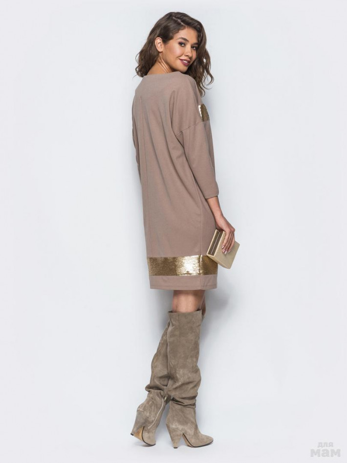 1. Лаконичное платье прямого кроя с вставками из мерцающих пайеток. Изделие со спущенной линией плеча - придаёт объем в области груди. Мерцающие вставки и простота кроя прекрасно подойдут как для фигуры типа "груша» и "прямоугольник". Без застежек. Замеры изделия:длина по спинке - 91 см;длина рукава (от горловины) - 54 см. Мне чуть великовато оказалось. Размер 44, 1735 руб,