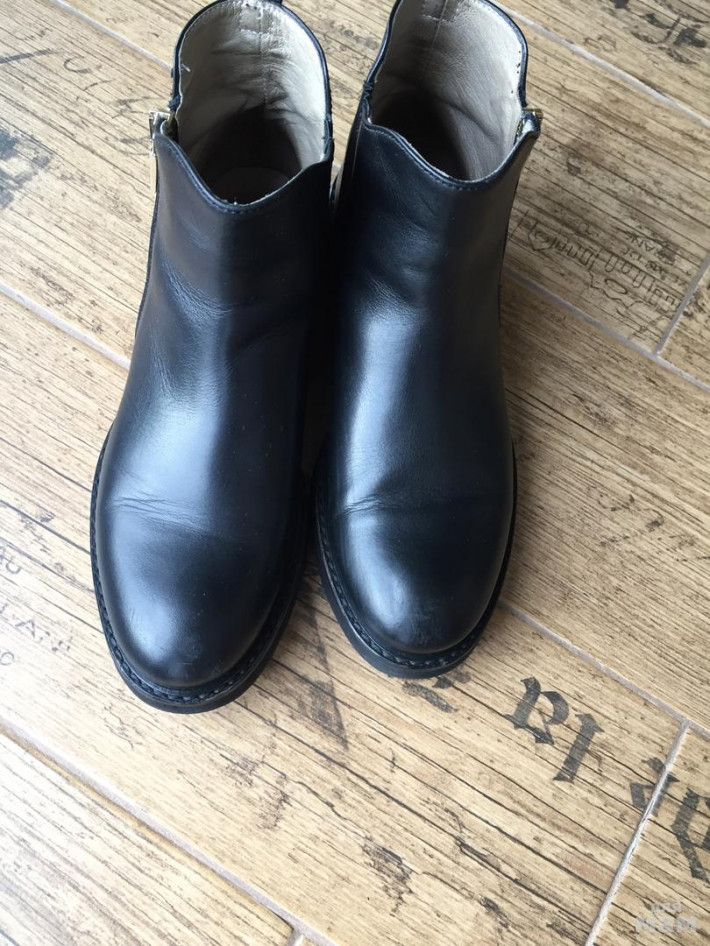 Состояние по фото хорошо видно, есть царапки на мысочках, жидкой кожей можно уменьшить их видимость. Немного потертости на подошве в зоне пятки. Идут на узкую стопу. В размер, стельку замерить тяжело, мой замер рулеткой 23 см.