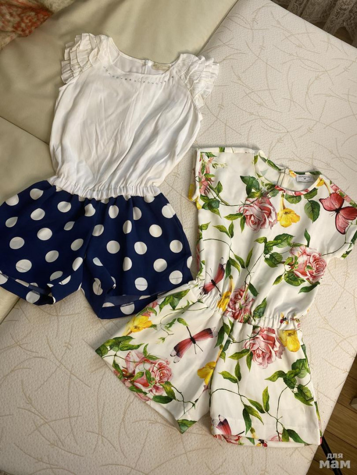 Два шикарных комбинезона. Фото загружаются не правильно:они очень яркие и красивые. С цветами одевали несколько раз-в идеале длина 62см., в груди 35см. 2500руб.