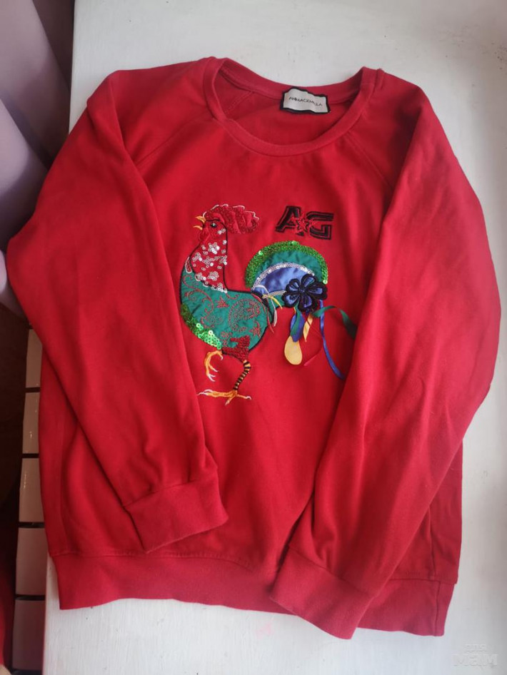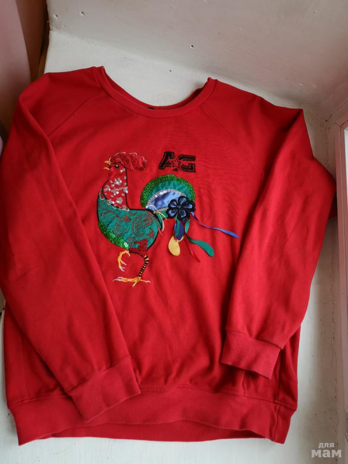 95% хлопка, 5% эластана. Аппликация вышивка с пайетками петух.
