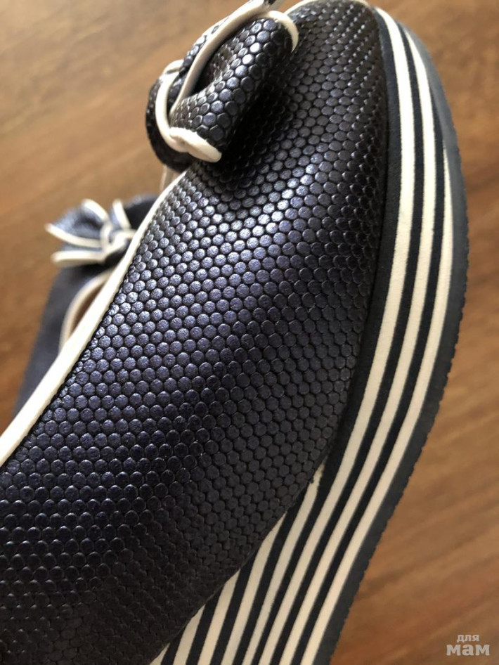 Продаются абсолютно новые женские туфли на танкетке. Натуральная кожа, производство Италия. Цвет темно-синий. Размер 36. Длина по стельке 23,5 см, ширина 7,5 см, высота 7 см.