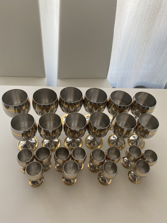 ✅Набор Принц (PRINCE). 30 предметов (6 шт.больших бокалов,6 штук средних бокалов и 12 малых,6 блюдец ). Позолота 24 карата. Цена 55 тыс . ПРОДАНО!