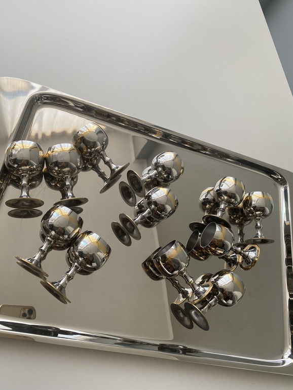 Материал: нержавеющая сталь Хром/Никель 18/10 (Cr/Ni 18/10) (не окисляется, не ржавеет, хорошо проводит тепло, обладает химической нейтральностью к любым продуктам) + серебряное покрытие 23 микрона 999 пробы.