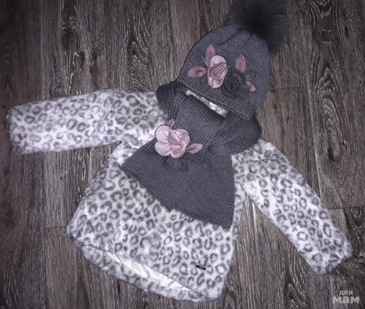 Шикарная демисезонная шубка из искусственного меха MAYORAL CHIC ( Испания). р.5-110, хорошо будет на рост 104-110. Обалденная расцветка снежный барс. На атласном подкладе жемчужного цвета, есть тонкий слой утеплителя. Спинка чуть длиннее переда, есть капюшон и два прорезных кармана. Удобная застежка-молния, фурнитура вся брендированная. На весну-осень. Температурный режим 0+10. Шикарная вещичка на выход с красивой шапочкой и сапожками. Стоила 5000.