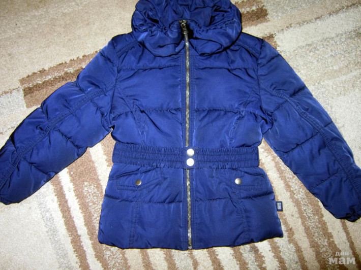 Очень классная курточка ORIGINAL MARINES (Италия) р.4-104 Глубокого темно-синего цвета, фото не передает, получается ярче. Шикарная шелковистая ткань с отливом. Не продувается и не промокает. Очень хорошо защищено горло, не нужны никакие шарфы, ворот дутый баллон на резиночке, пояс тоже с резинкой, на 2 кнопочках. Застежка-молния. Шикарная и стильная вещь.
