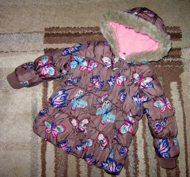 Отличная тепленькая дутая курточка на флисе NEXT р.3-4 (98-104). Цвет какао с прикольными бабочками. Отделка искусственным мехом. Застежка молния + пуговицы. Наполнитель полиэстер. Отлично смотрится с джинсами. Состояние отличное.