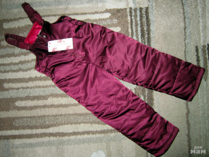 Зимний полукомбинезон Stilnyashka р.104. Цвет баклажан, хамелеон. Не широкий, штанины тоже не широкие. Отлично на стройняшек. Лямочки регулируются, на попе и до середины штанин утеплен флисом, есть прорезиненные снегозащитные манжеты внутри штанин.