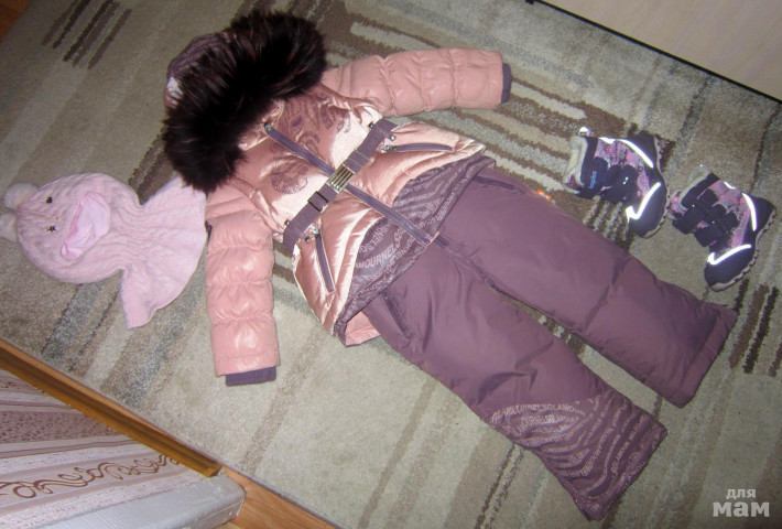 Шикарный зимний пуховый комплект NELS GLAMOUR р. 98+6. Цвет пудрово-розовый и лавандовый. Опушка - просто бомбическая!!!! Огромный енот с перьями шоколадно-бордового цвета. Выглядит на самом деле очень гламурненько. Весь переливается, стразы на замочках, красивый рисунок. В полукомбинезоне снизу снегозащитные манжеты, лямочки на липучках, длина регулируется. В курточке трикотажные манжеты,можно разогнуть и будут митенки, на попе двойное утепление. Носили только в морозы, На зиму 5 комплектов, изнашивать не успеваем. Состояние отличное. Но есть малюсенький нюансик, совсем капельку задеты штанины сзади снизу, никто еще не заметил, но привыкла описывать все. Очень теплющий, кофточки под него не одевали ни разу, только на лонг или термобелье.