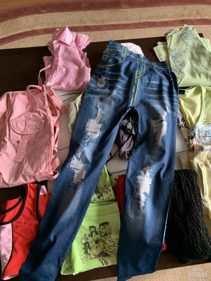 В хорошем состоянии 13 вещей+легенсы под джинсы в подарок( не помню чтоб одевали так же как и колготки). Колготки очень красивой ажурной вязки.