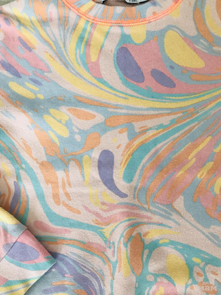Комплект в хорошем состоянии. Леггинсы и шорты размер 5 лет, толстовка 6 лет. Вещи соразмерны. Качество отличное.