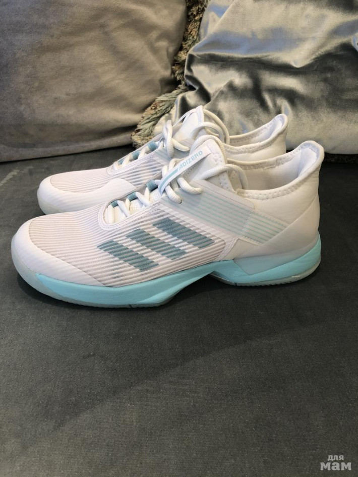 Новые кроссовки.Очень стильные,яркая подошва. Мысок Adituff устойчив к механическим повреждениям. Цельный облегающий верх для несравненного комфорта.ПОДДЕРЖКА СРЕДНЕЙ ЧАСТИ СТОПЫ.Легкий каркас Sprintframe с эффективной поддержкой.Кроссовки доя тенниса,но и отлично подойдут для повседневной носки.Сейчас цена в магазинах 11.900 я брала в клиент дни с 40% скидкой. размер 37 ( по стельке 24-24.5см )
