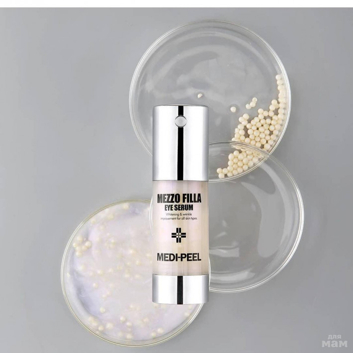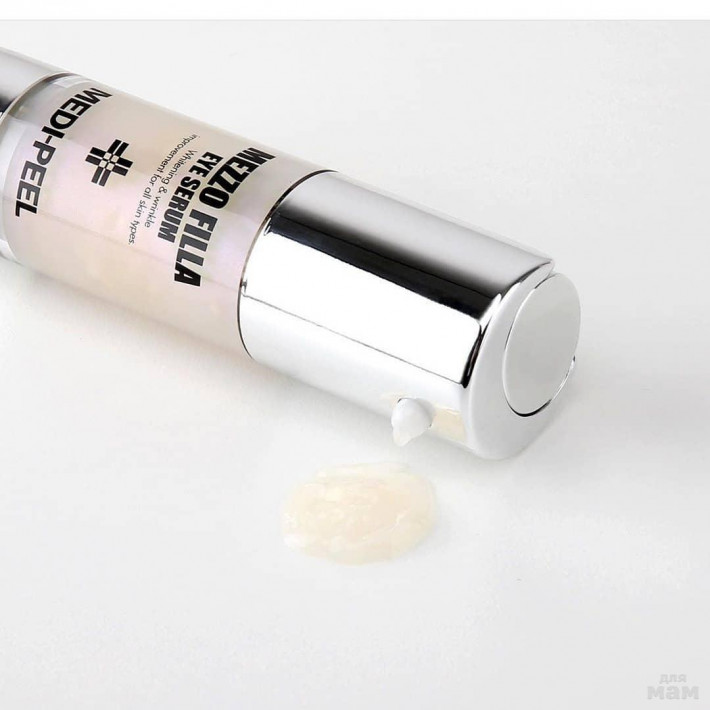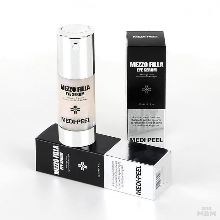 Омолаживающая пептидная сыворотка для век MEDI-PEEL Mezzo Filla Eye Serum обладает ярко выраженным подтягивающим действием, разглаживает мимические морщинки в области вокруг глаз и носогубных складок, обладает ревитализирующим действием и тонизирует, даёт глубокое увлажнение и мягко осветляет тёмные круги.