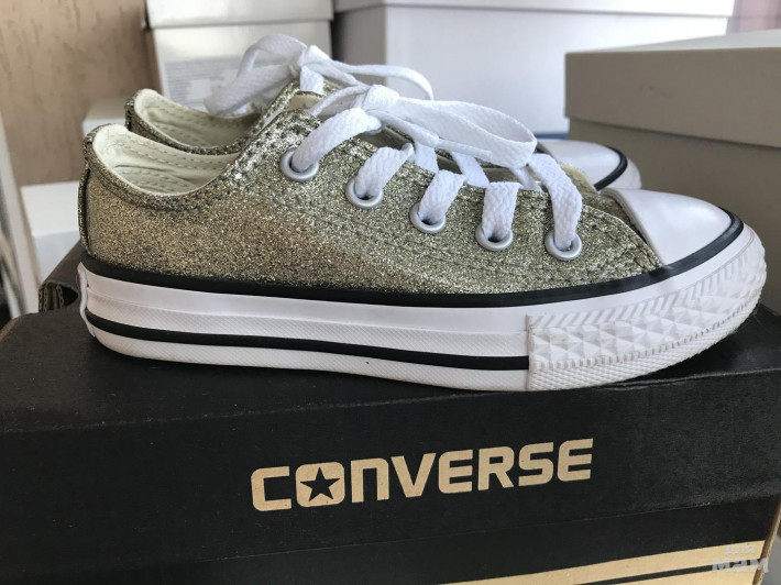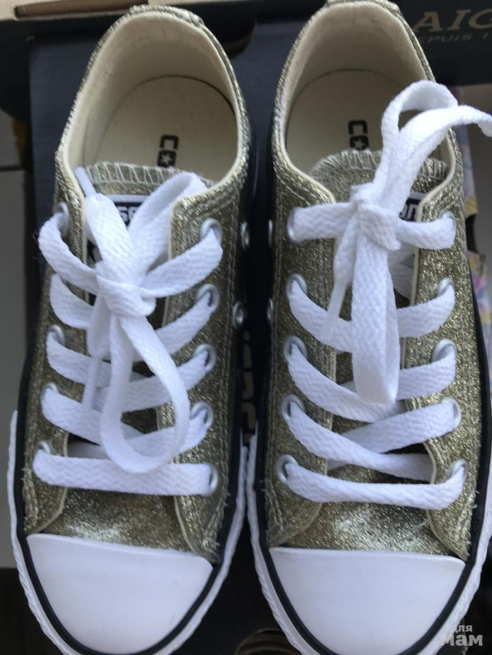 В состоянии новых. На ногу 28-29 размера. На коробке указан размер 27, но они очень большемерят. Стелька 19 см. Ламинированный глиттер. Очень эффектные.