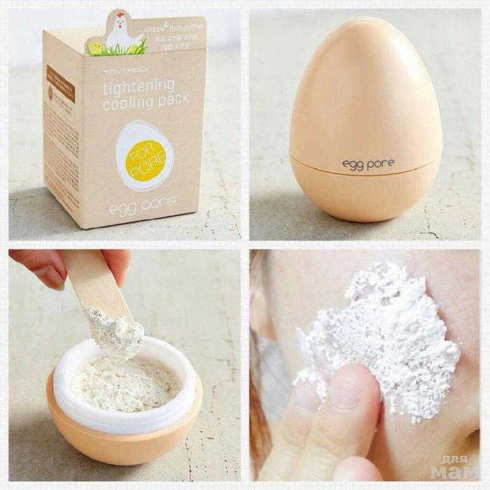 Знаменитое яичко из супер-популярной "Egg Pore" от Tony Moly. Маска разработана специально для Т-зоны. За счет содержания яичного белка и экстракта камелии, очищает и сужает поры, контролирует работу сальных желез и препятствует появлению чрезмерного жирного блеска, оставляя после себя идеально чистую кожу. При регулярном применении маска делает кожу гораздо менее пористой и выравнивает рельеф и общий тон лица.
