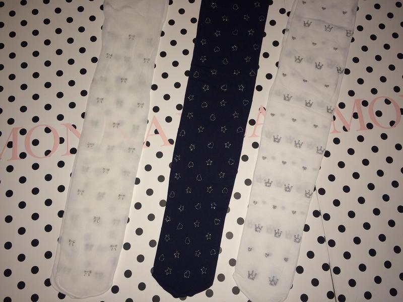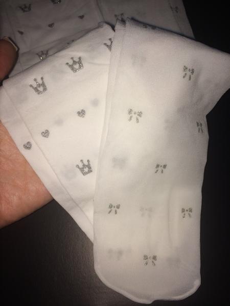 Юля здравствуйте, можно капроновые колготки белые с коронами, розовые с каретами и красные с люрексом. Все на 4-6 лет