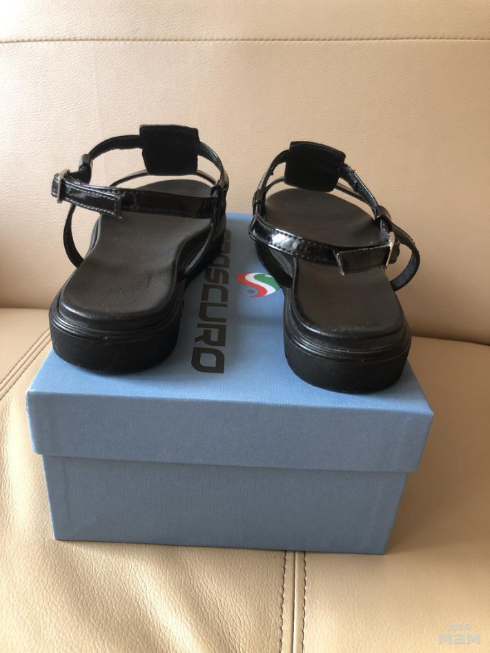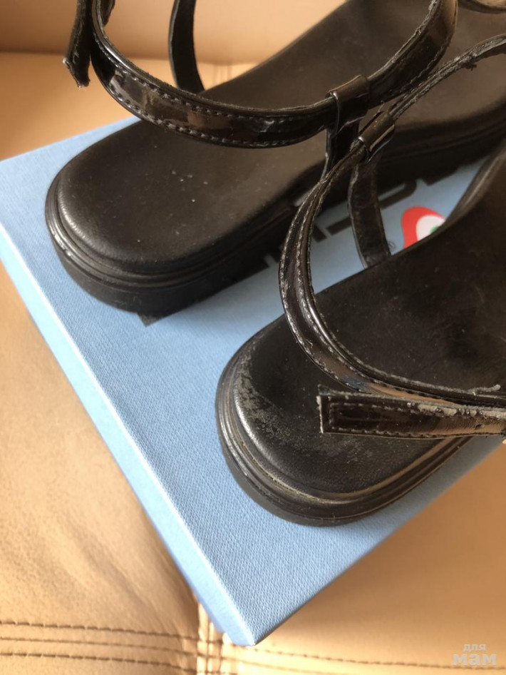 Модные итальянские босоножки на платформе, размер - 38, красивая россыпь страз (прикреплены намертво, не одной не утеряно). Состояние хорошее, из следов носки (см. последние два фото): лак потрескался на ремешках в районе застёжки; есть потертости на правой стельке в области пятки; в нОске эти нюансы не будут заметны.
