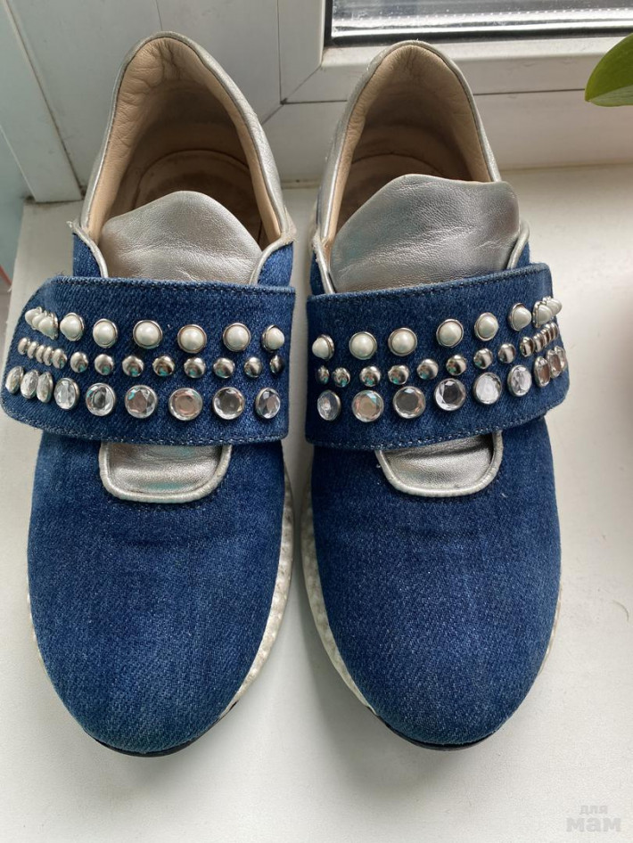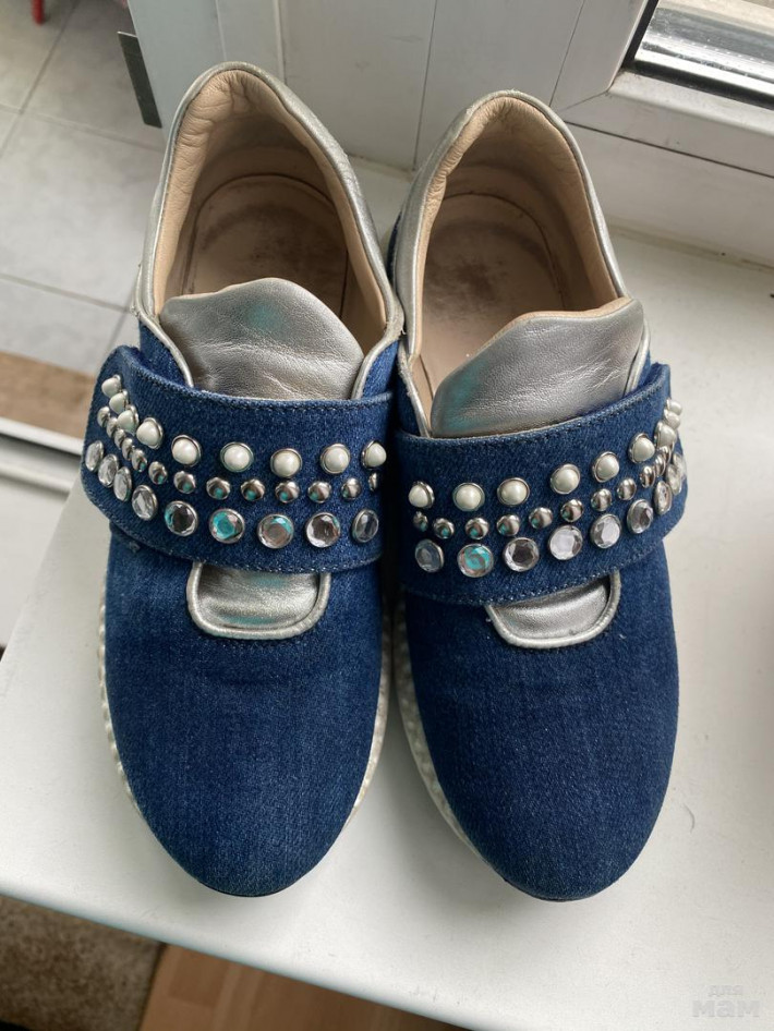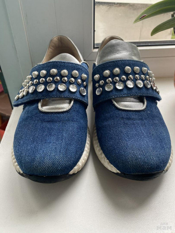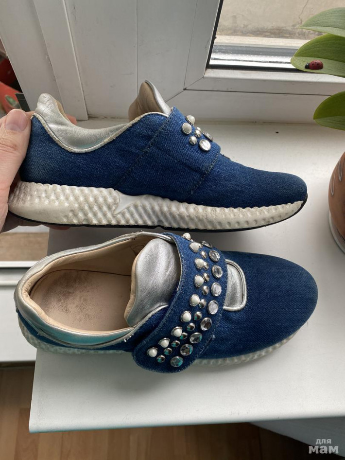 + кроссовки Италия. Маркировка 33 по стельке 21см. Кожа натуральная, все камни на месте. Застегиваются на липучку. Состояние хорошее- крепкие, хорошо держат ногу (все же не Китай)).