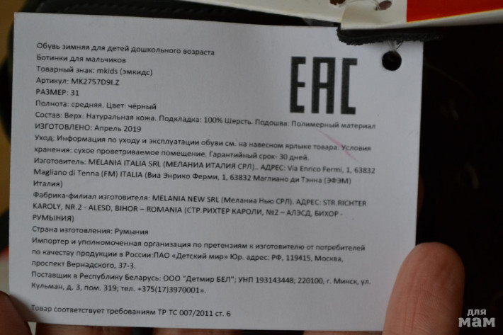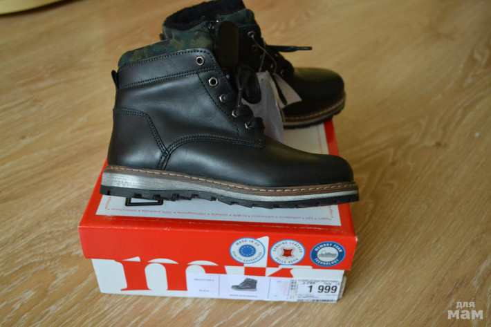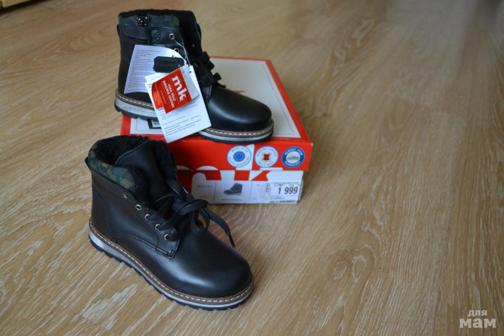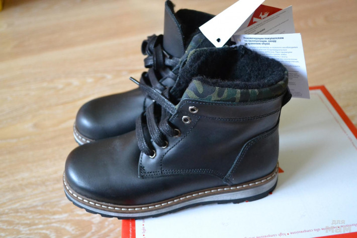 Очень теплые зимние ботинки m kids( пр-ль Италия-Румыния). Верх - натуральная кожа, внутри на теплой 100% шерсти. К сожалению, зима была теплой и сыну не пригодились. Совершенно новые, бирки на месте. Стелька не вытаскивается, примерно 20см. у меня вышло. Подошва с протектором, не будут скользить.